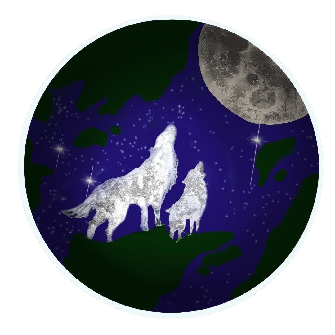 Stellar的會徽是由兩隻白狼、星星、地球和月亮組成。